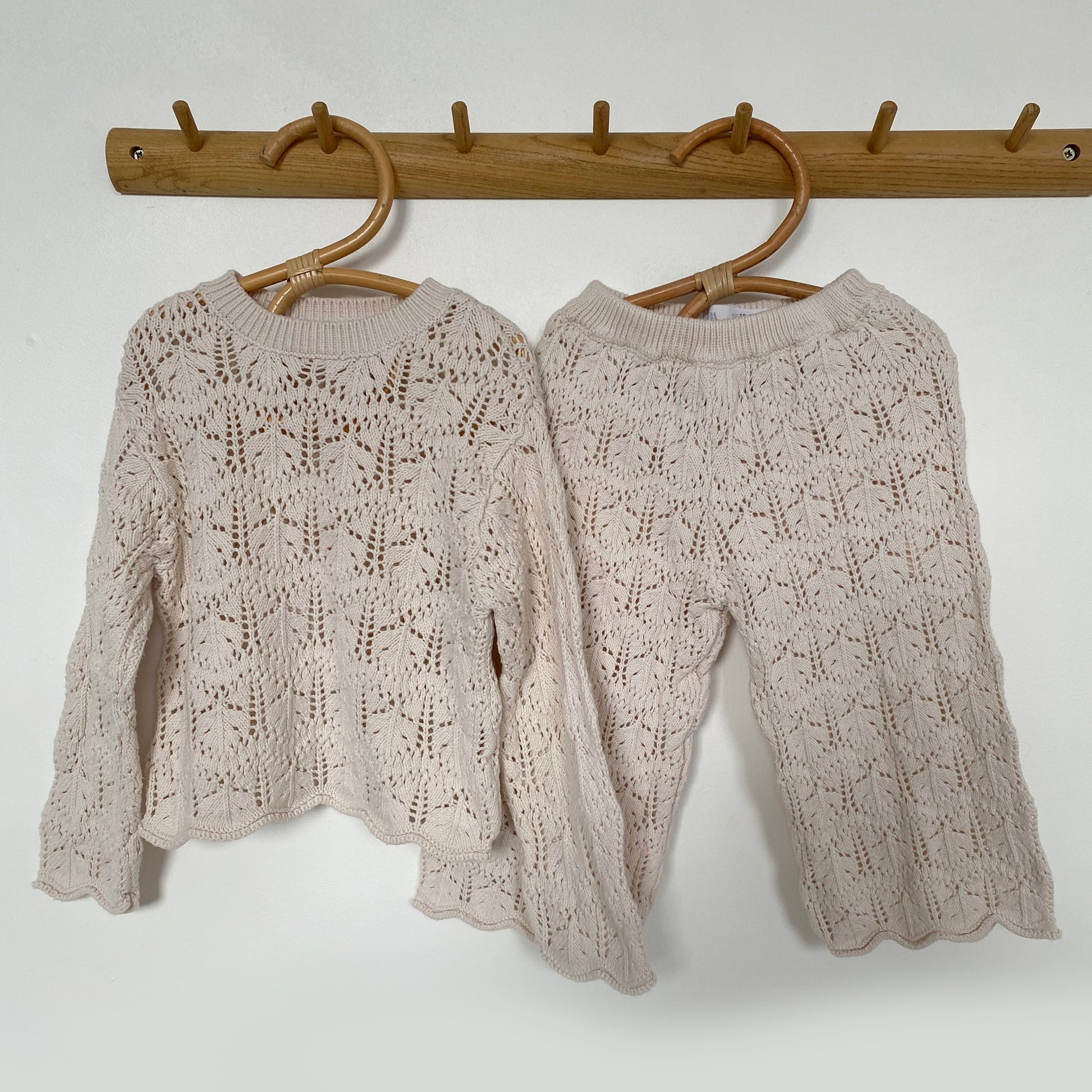12-18/18-24M Zara cream crochet knit co-ord long sleeve jumper and wide leg trousers