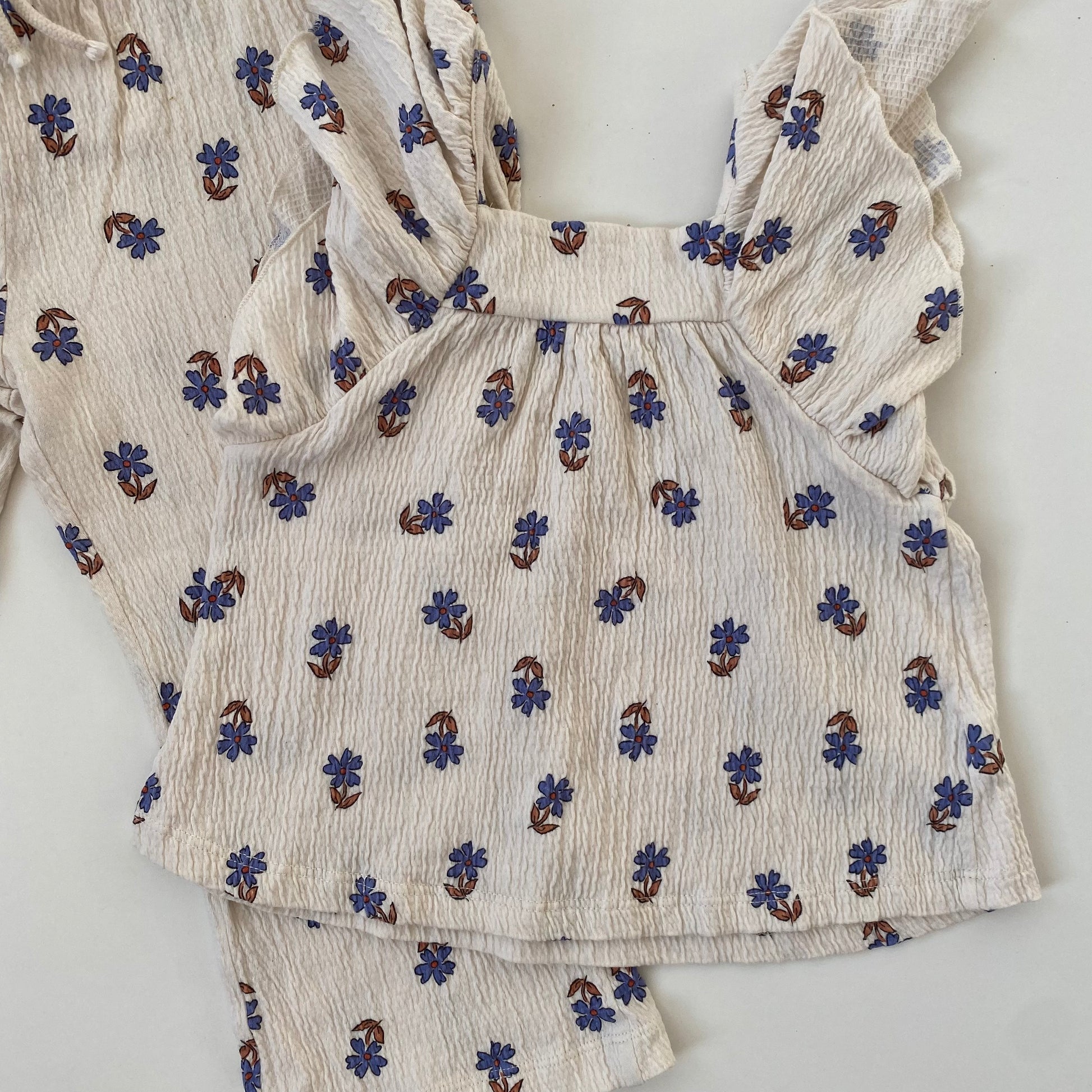 3-4Y Zara cream blue floral wide leg trousers and frill top set